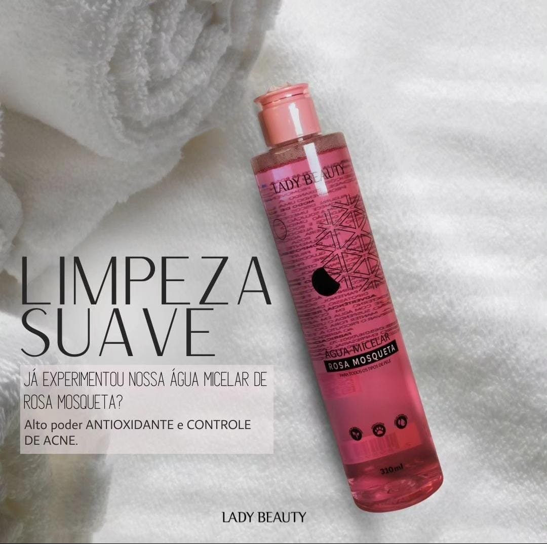 Água Micelar Rosa Mosqueta Lady Beauty, uma fusão de limpeza suave e cuidado revitalizante a presença do extrato de rosa mosqueta oferece benefícios notáveis à pele. Rico em ácido graxos e antioxidantes a rosa mosqueta auxilia na hidratação profunda e na restauração de elasticidade da pele, proporcionando uma aparência mais suave e luminosa. As micelas presentes na fórmula agem como imãs. Removendo suavemente impurezas, resíduos de maquiagem e oleosidade, sem comprometer a barreira de hidratação natural da pele.