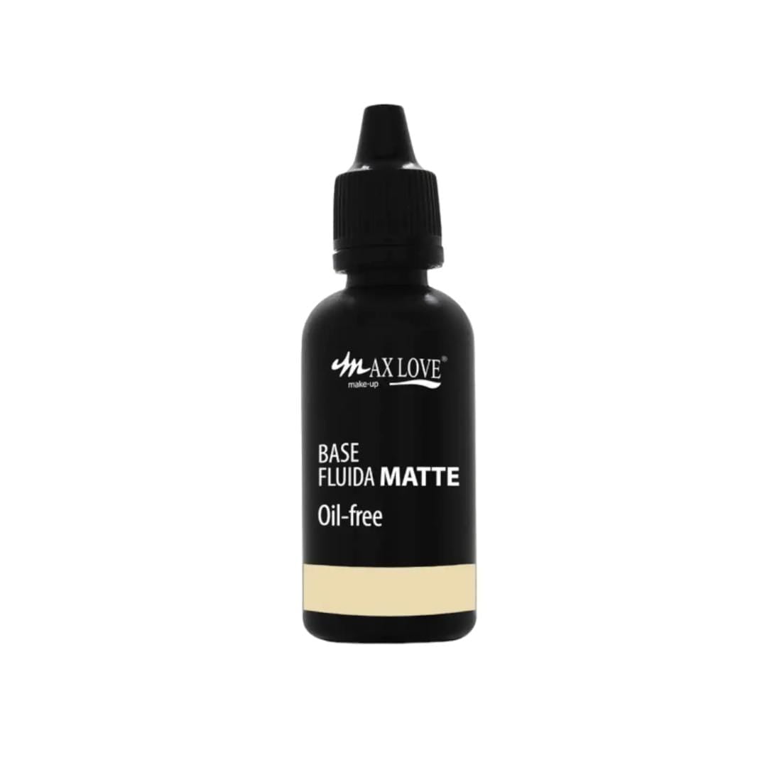 A Base Fluida Matte Oil-Free Max Love, tem textura leve e é ideal para compor uma make com aspecto natural, permitindo também a construção de camadas, para se atingir o nível de cobertura desejado. Sua fórmula tem ação hidratante, pois é enriquecida com Ácido Hialurônico, Chá Verde, Vitamina E e Extrato de Algas Marinhas.