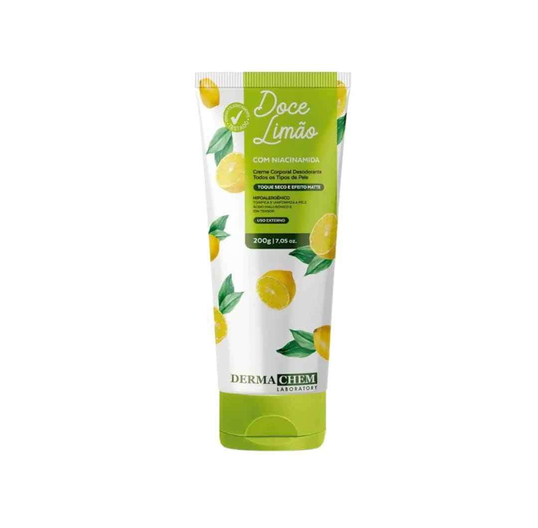 O Creme Corporal Desodorante Doce Limão Dermachem Laboratory, é um desodorante corporal desenvolvido para deixar a sua pele perfumada e hidratada por muito mais tempo.