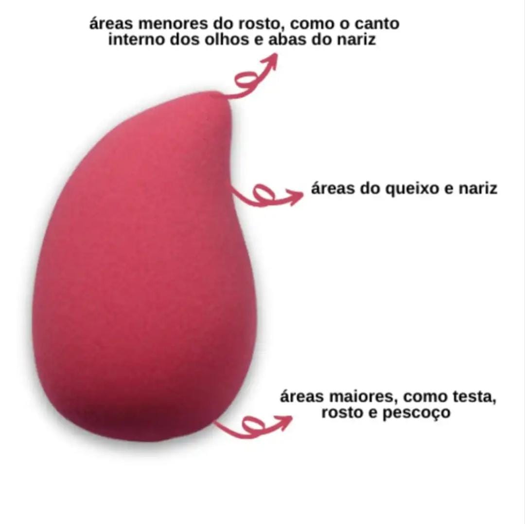 Esponjinha de maquiagem com formato super diferente, imitando uma manga. Possui design anatômico que facilita a aplicação de produtos líquidos, cremosos e em pó na face, alcançando todos os cantinhos e garantindo acabamento uniforme. Super macia e cresce quando umedecida.