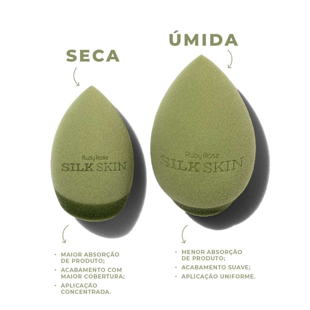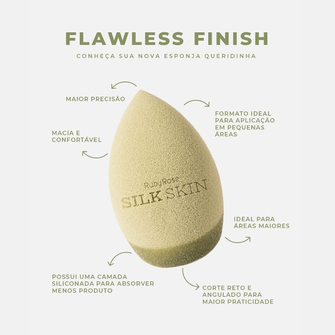 A Esponja Para Maquiagem Flawless Finish Silk Skin Hba7002 Ruby Rose, possui textura macia e toque confortável, ideal para aplicação de base, corretivo e produtos cremosos.