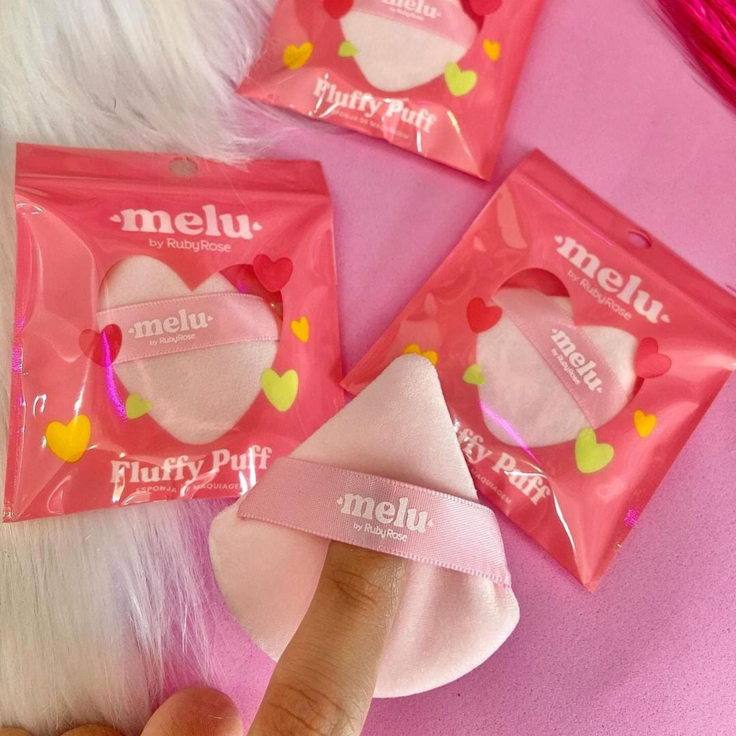 Esponja Para Pó Fluffy Puff melu by Ruby com seu formato permite alcançar áreas de difícil acesso, proporcionando um acabamento suave e natural.