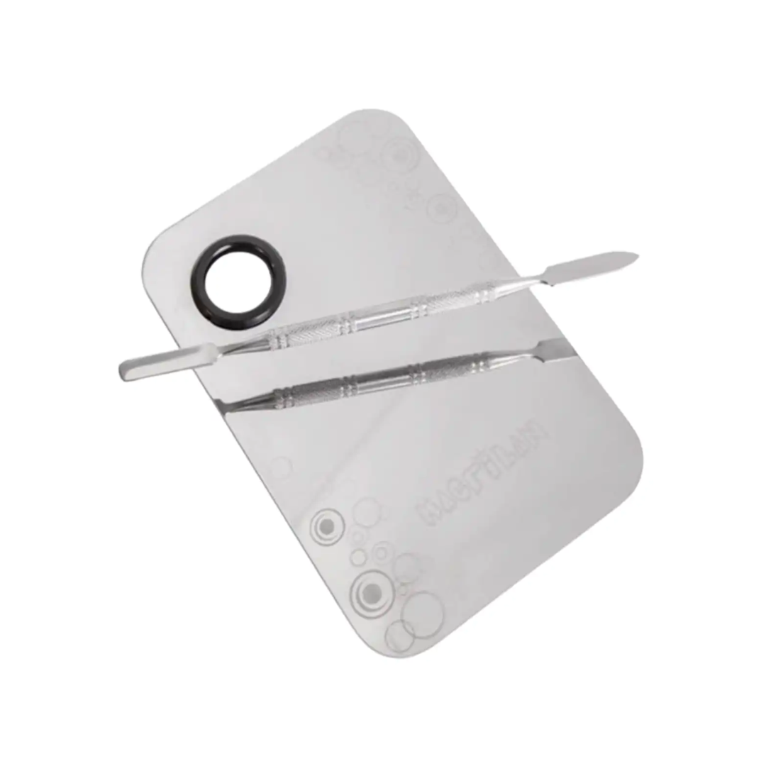 A Placa de Aço Inox para Maquiagem da Macrilan AC-03 é ideal para diluir e misturar produtos com auxílio da Espátula de Aço Inox da Macrilan, tais como hidratantes, primers, bases, corretivos, sombras, blushes, delineador em gel, entre outros. Aplique a mistura gradativamente no rosto construindo o efeito ou a cor que deseja e mantendo a higiene da maquiagem. Possui um espaço para colocar o dedo a fim de facilitar o manuseio.