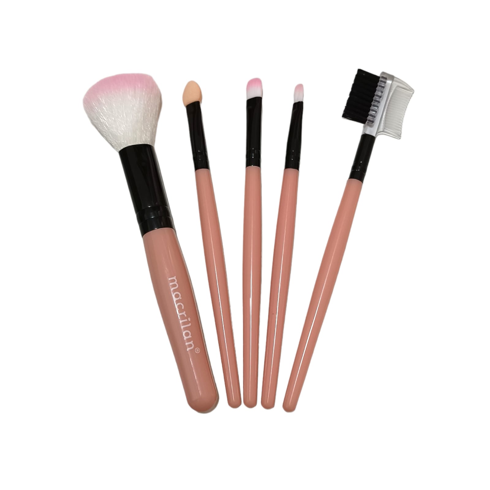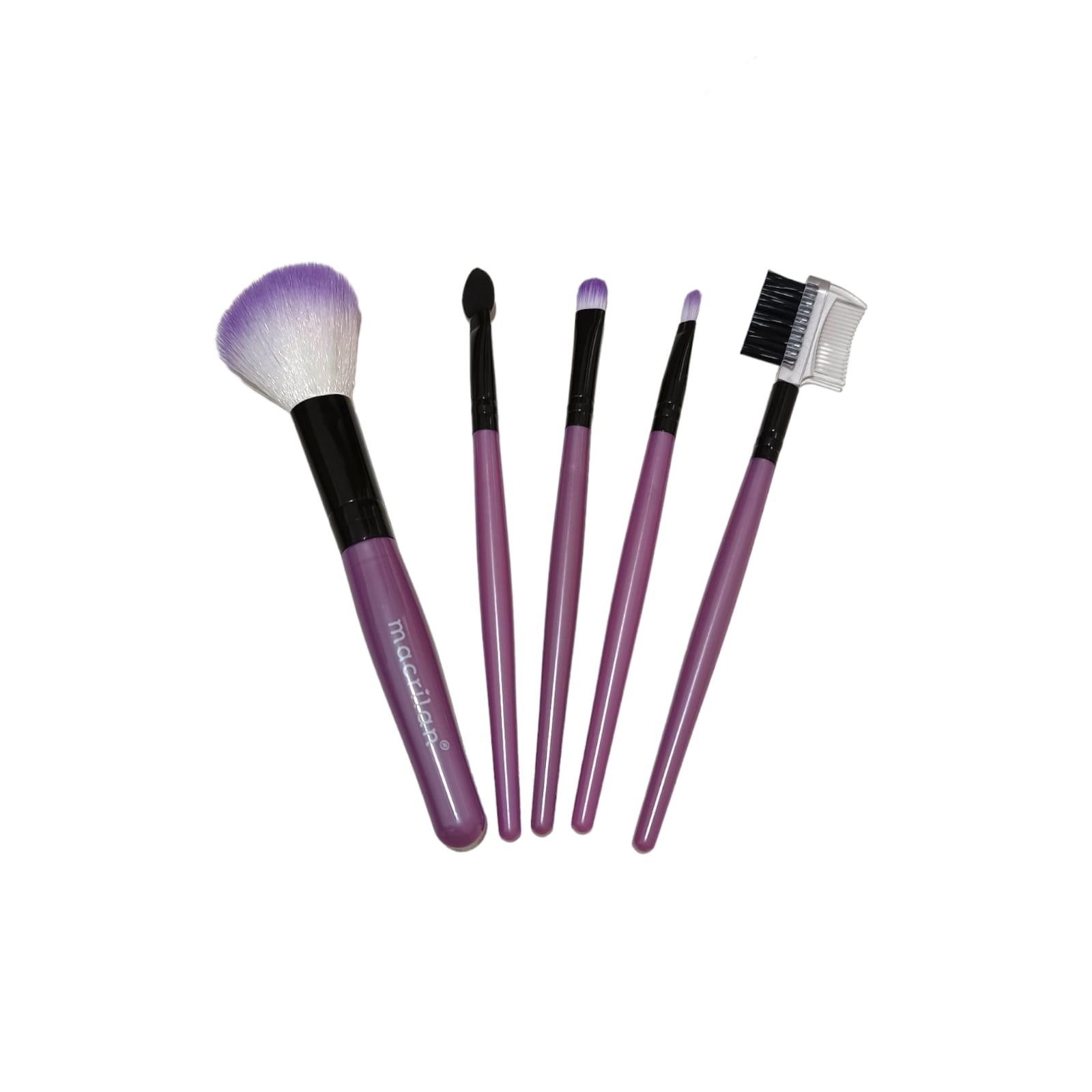 Kit Pincel da Macrilan, uma empresa brasileira, especialmente desenvolvido para manter em bolsas e necessáries. Com cerdas macias e arredondadas para maquiagem.