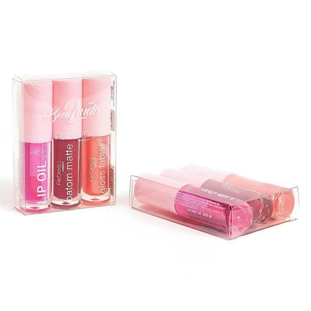 O Kit Boca Linda da Febella é a escolha ideal para quem ama variar na maquiagem com praticidade e sofisticação. Com três cores incríveis que vão do clássico ao moderno, você garante lábios marcantes…