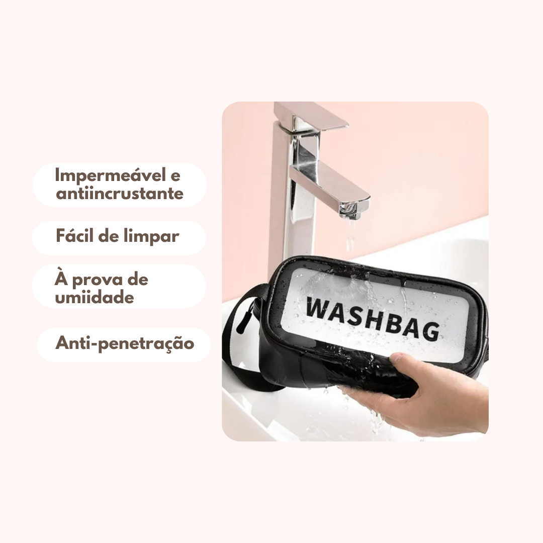 As bolsas Washbag impermeáveis são a solução perfeita para transportar e organizar sua maquiagem e seus produtos de beleza. Nossas bolsas são super resistentes e são feitas de plástico de alta qualidade e couro sintético. Alça de Nylon reforçado com costura dupla.