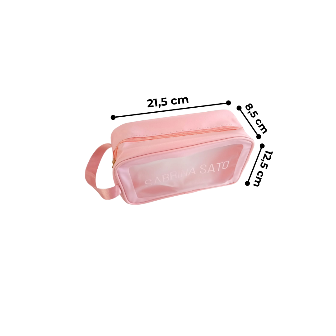 Necessaire Sabrina Sato perfeita para viagens e praia. Feita em vinil transparente e impermeável, com zíper. Personalize seu estilo enquanto mantém seus itens organizados. Imperdível para quem busca praticidade e estilo.