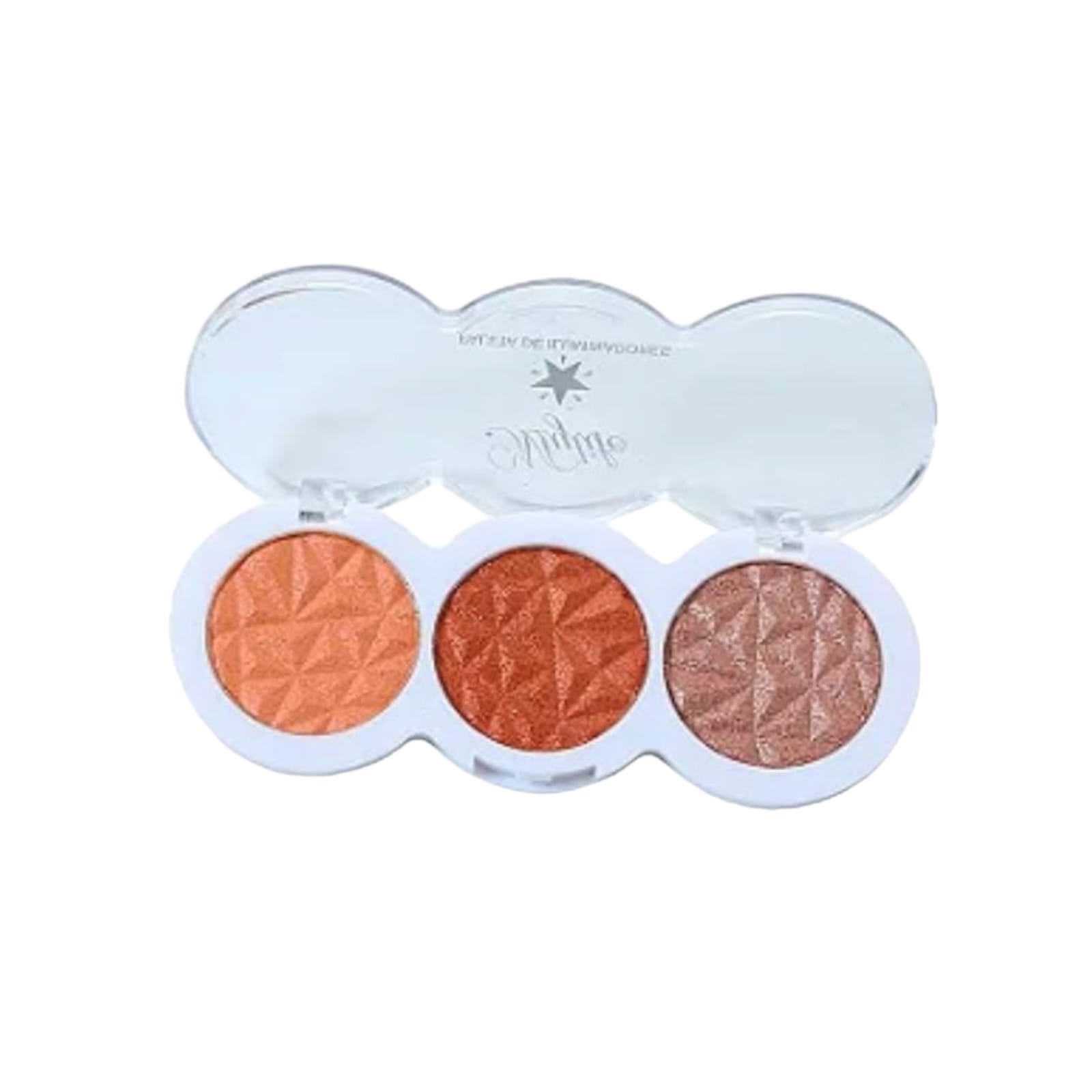 A Paleta de Iluminador Highlight Up Mylife vem com quatro variações de três tons diferentes. Ele é pigmentado na medida certa, perfeito para destacar as áreas iluminadas do rosto e definir bem a maquiagem.
