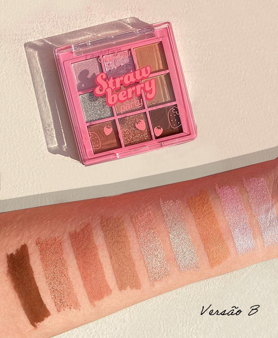 A Paleta de Sombras Strawberry Party City Girls veio para trazer até você um festival do morango em forma de makes! São produtos divertidos e alegres que vão compor sua maquiagem de forma única! As paletas de sombras da Coleção têm um total de zero defeitos! São super compactos e contam com 9 núcleos de sombras com diversos acabamentos e texturas diferentes!