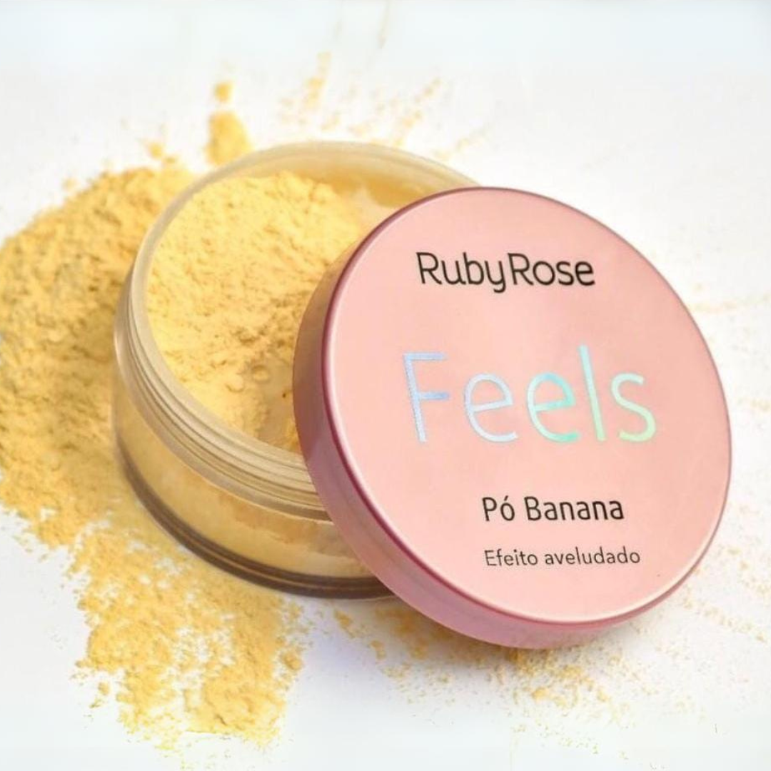 O Pó Banana FEELS Ruby Rose possul acabamento matificanto a aveludado, ideal para selar a pele prolongando a duração da maquiagem. Contém particulas finas que se adaptam dos mais diferentes tons de pele proporcionando um aspecto suave.