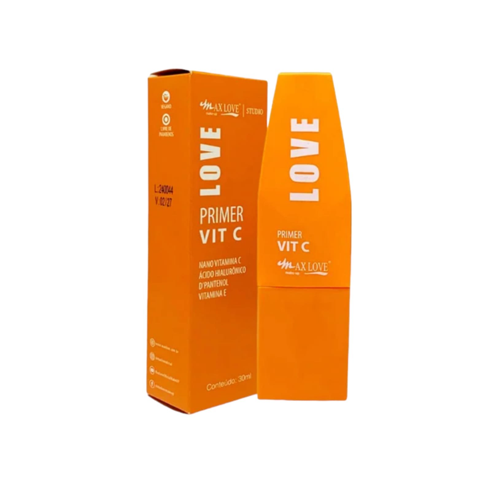O Primer VIT C Max Love é enriquecido com Nano Vitamina C, D’Pantenol, Ácido Hialurônico e Vitamina E. Prepara a pele para receber a maquiagem entregando os benefícios da ação antioxidante e hidratante. Fórmula Oil-Free, vegana e livre de parabenos.
