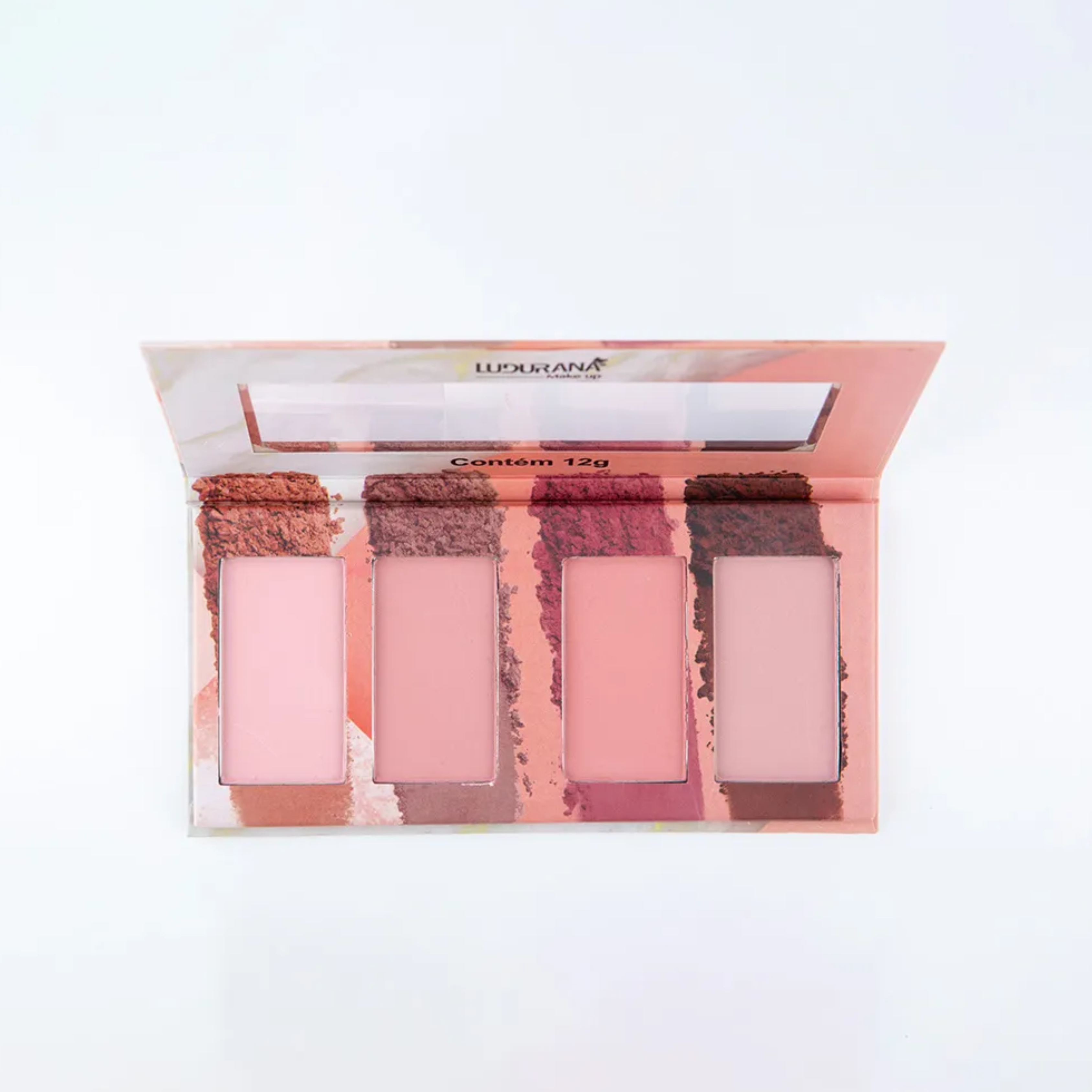 Realce suas bochechas com o Quarteto de Blush da Ludurana. Com quatro tons de rosa maravilhosos, esse blush deixará sua maquiagem linda e natural.